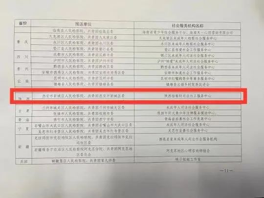 陕西指南针司法社工服务中心被确定为“全国未成年人检察社会支持体系示范建设工作单位”的合作支持单位